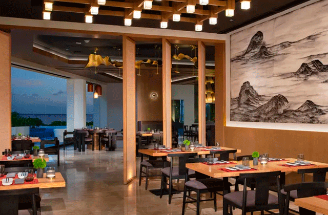 Las instalaciones cuentan con 8 restaurantes de especialidad o en estilo buffet. En World Café se puede disfrutar de desayunos buffet, mientras que en Himitsu, El Patio y Bordeaux se sirven platos a la carta asiáticos, mexicanos y franceses, respectivamente. Los huéspedes pueden saborear bebidas premium en los bares de la playa, la piscina o el lobby.
